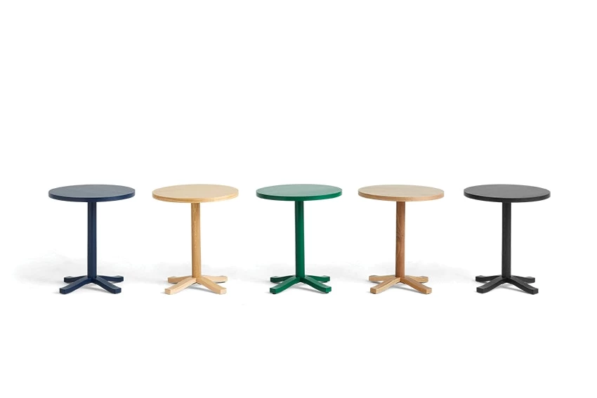 - Compact side table inspired by French brasseries.