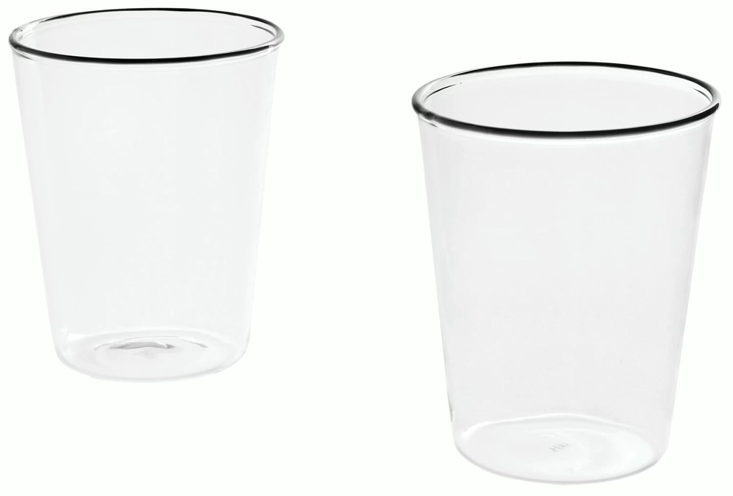 - Mouth-blown borosilicate glass with trim around rim.