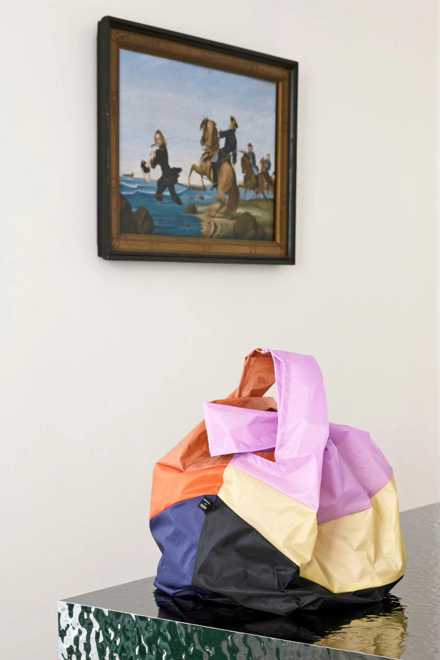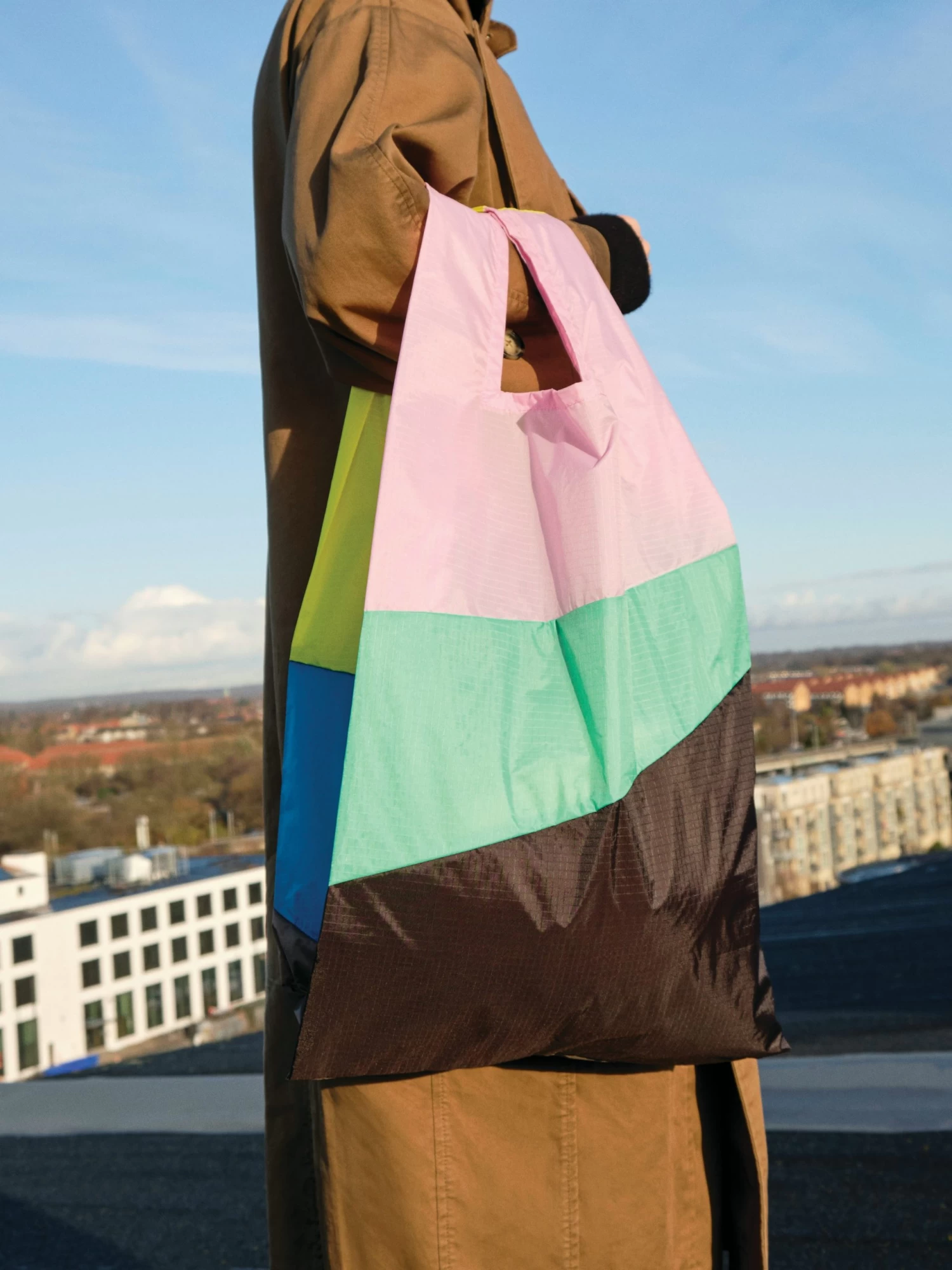 Shop the Six-Colour Bag by Susan Bijl and Bertjan Pot, a functional yet playful shopping bag marked by a geometric six-color design.