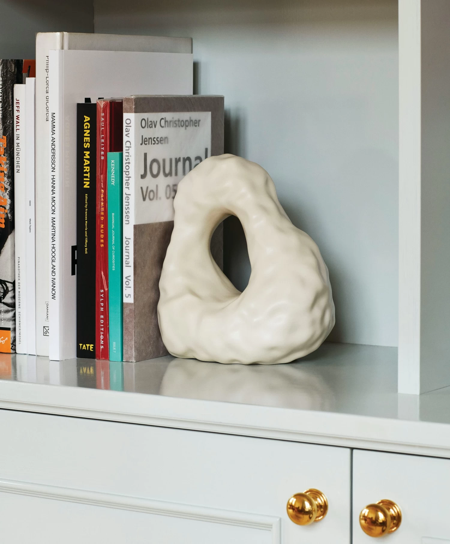 Inspired by the space where digital and physical forms meet, Wang & Söderström’s Boulder Bookend is a unique sculptural object that serves as a piece of art. Each bookend begins as an organically shaped 3D model developed in their studio before it’s 3D printed and molded in stoneware at a ceramic factory. “We want to explore the tactile side of digital modeling – one foot in the physical realm, one in the digital,” the designers say.